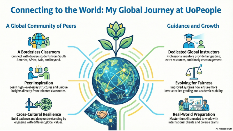 University of the People(以下、UoPeople)は多国籍な環境で、世界中から参加しているクラスメイトとオンラインキャンパス上で交流します。